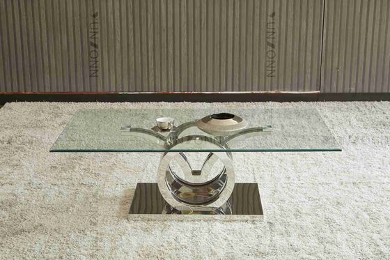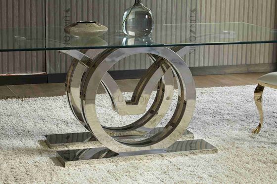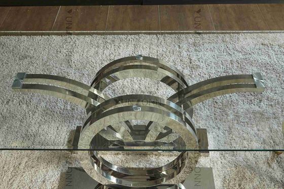 Martılar Tasarım Paslanmaz Çelik Altlık Cam Üst Yemek Masası Çerçevesi Gümüş