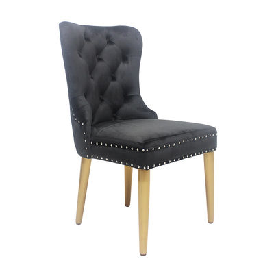 Siyah düğme kelepçeli kadife sandalye yemek sandalyesi zarif model
