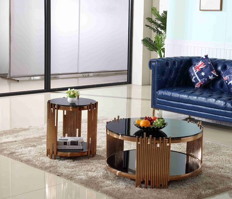 Modern lüks altın yuvarlak sehpa seti oturma odası mobilyası