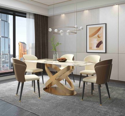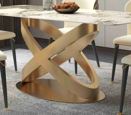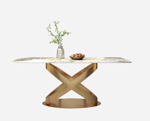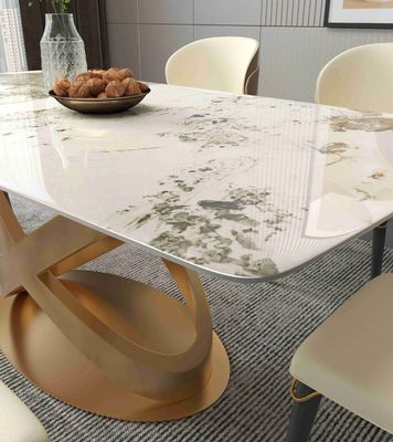 Yeni Tasarım Bronz Kaideli Modern Beyaz Dikdörtgen Taş Yemek Masası