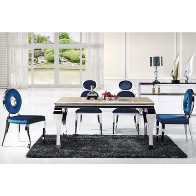 Yemek masası, çoğunlukla evde satın almaya uygun, basit bir tasarıma sahiptir.Basit stil dayanıklıdır, çiçeğin rengi değil, ana renk olarak klasik paslanmaz çelik gümüştür.Masa üstü mermer veya MDF panel kullanmayı seçebilir.Bu tarz her zaman büyük mobilya satıcıları tarafından büyük miktarlarda satın alınmıştır.