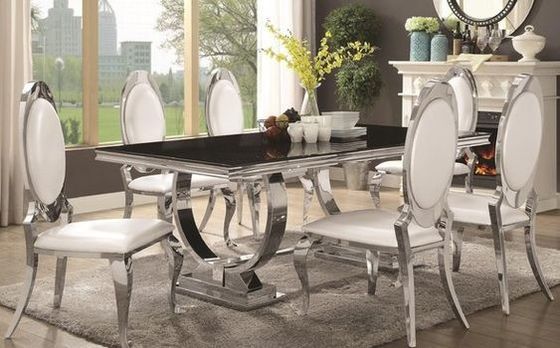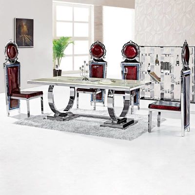 Yemek masası, çoğunlukla evde satın almaya uygun, basit bir tasarıma sahiptir.Basit stil dayanıklıdır, çiçeğin rengi değil, ana renk olarak klasik paslanmaz çelik gümüştür.Masa üstü mermer veya MDF panel kullanmayı seçebilir.Bu tarz her zaman büyük mobilya satıcıları tarafından büyük miktarlarda satın alınmıştır.