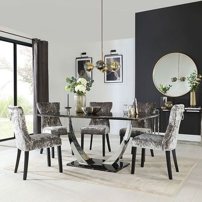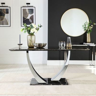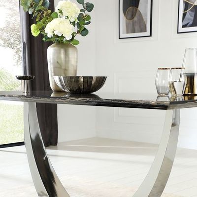 Siyah mermer krom ss paslanmaz çelik gümüş yemek masası 150*90*75 ölçü