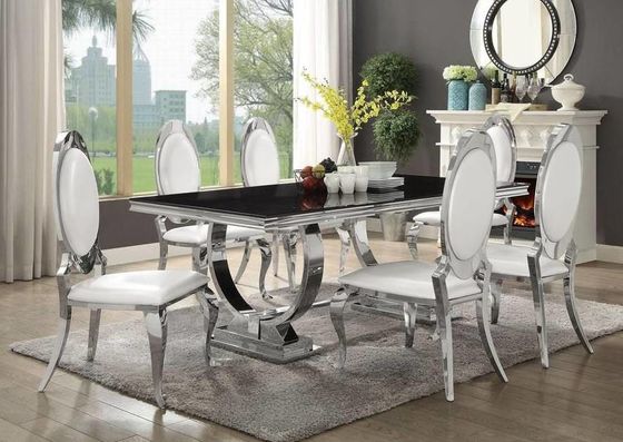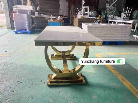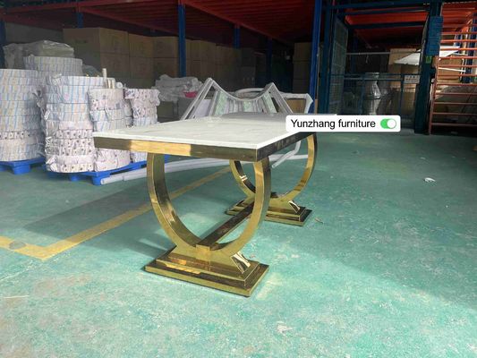 Sıcak Satış Tasarım Yemek Masası, Gümüş Altın Paslanmaz Çelik Tabanlı Mermer Üst