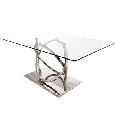 Yemek Odası İçin Şeffaf Camlı Lüks Gümüş Metal Yemek Masası