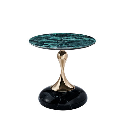 Lüks Merkezi Masa Modern Oturma Odası Mobilya Yuvarlak Eğilmiş Son Masa Siyah Altın Metal Cam Kahve Masası