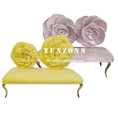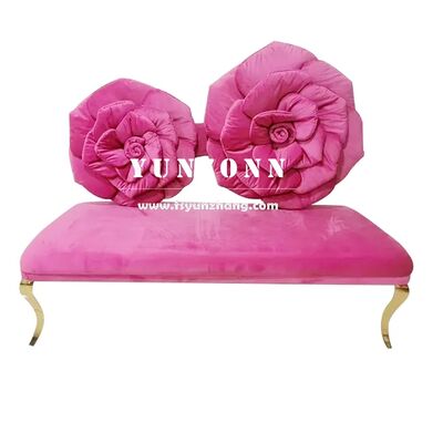 Modern Paslanmaz Çelik Kanepe Gül Çiçeği Arka Tasarımı Pembe Kırmızı Kadife Koltuk Hotel Düğün Sevgililerin Favori