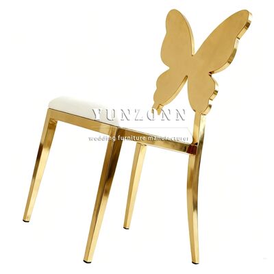 Profesyonel Üretim Paslanmaz Çelik Kelebek Sırt Rahat Yemek Sandalyesi Altın Sırtlı Düğün ve Etkinlik Sandalyeleri |