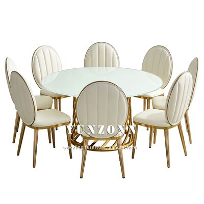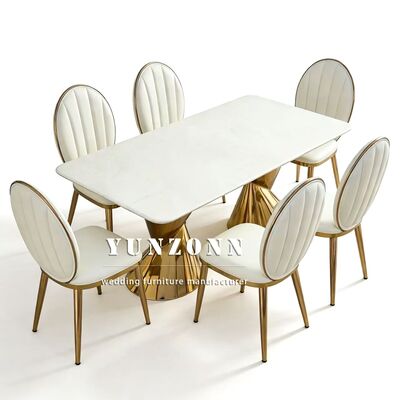 Q3: What is the material of your products? A3: Table and chair stainless steel frame,toughened glass on the table; marble or wood. The chair cushions are made of high density sponges and high quality leather or cloth.