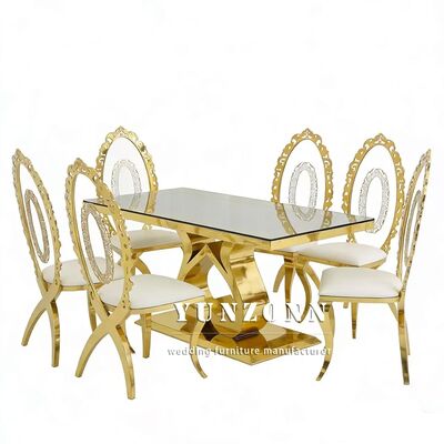 | Ürün Adı: | Ucuz Otel Etkinlikler Parti Mobilya Gelin ve Damat Masa Altın Paslanmaz Çelik Cam Üst Dörtgen Düğün Yemek Masaları |