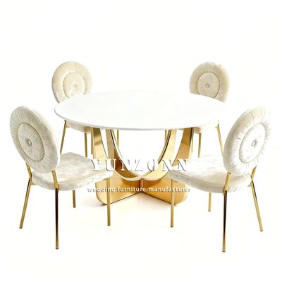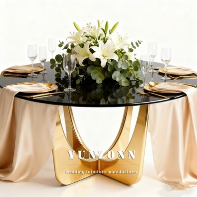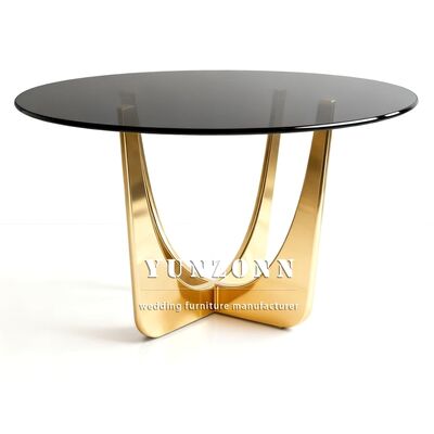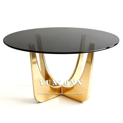 | Ürün Adı: | Lüks yuvarlak paslanmaz çelik düğün masası etkinlik tasarımı Altın cam üst yemek masası |
