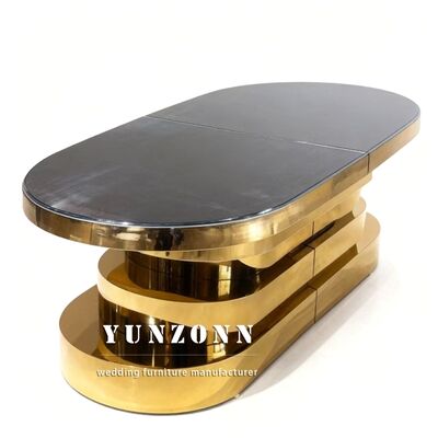 | Ürün Adı: | Parti Mobilyaları Altın Paslanmaz Çelik Cam Ayna Üst Yemek Masası Düğün için |