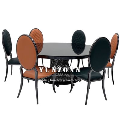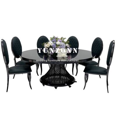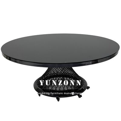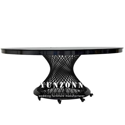| Ürün Adı: | Otel Banket Cam Üst Siyah Yemek Masası Paslanmaz Çelik Yuvarlak Metal Taşınabilir Düğün Masası |