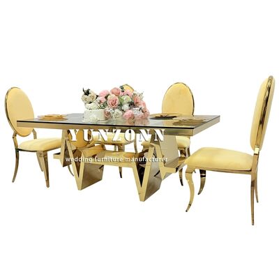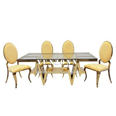 | Ürün Adı: | Toptancı Düğün Mobilya Masa Modern Lüks Altın Paslanmaz Çelik Cam Yemek Masası 6 Sandalye Setleri |