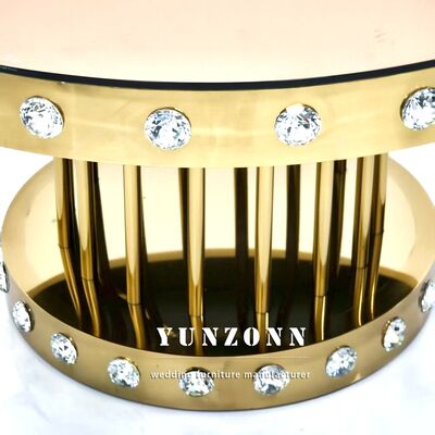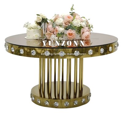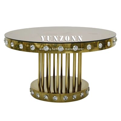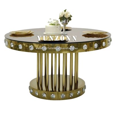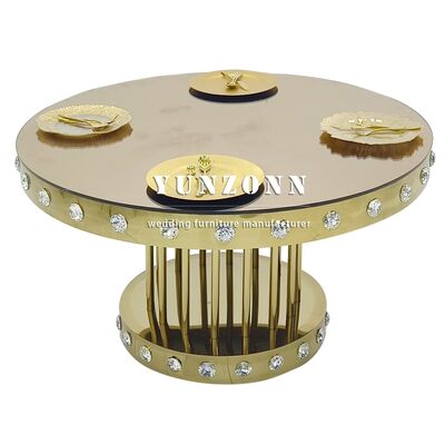 Golden Round Wedding Crystal Table with Stainless Steel Metal Base for Restaurants Banquets and Events