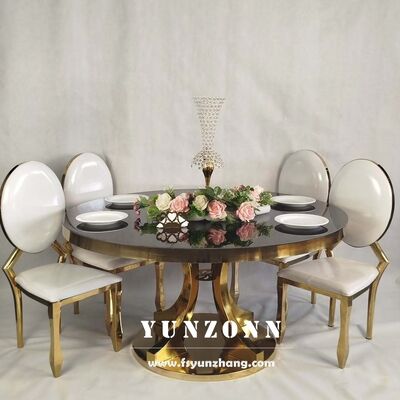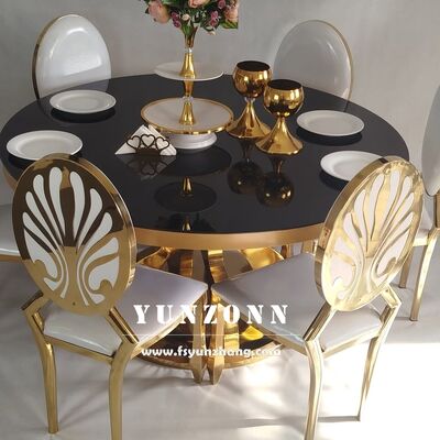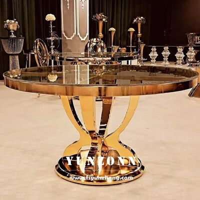 | Ürün Adı: | Özel Çağdaş Paslanmaz Çelik Kaide Tasarımı Altın Otel Kraliyet Restoran Lüks Yuvarlak Cam Yemek Masaları |