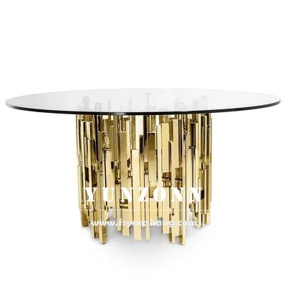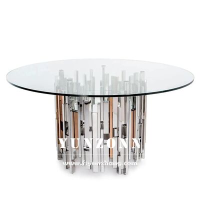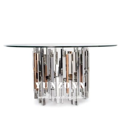 Dubai Koleksiyonu Paslanmaz Çelik Düğün Pasta Masası Cam Üstü Elegant Otel Mobilya Dekoru