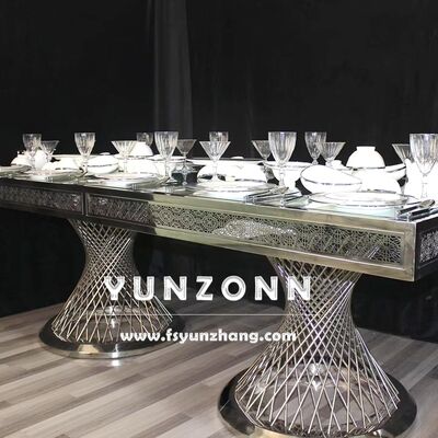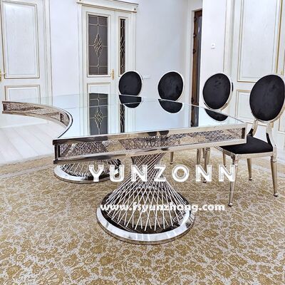| Ürün Adı: | Düğünler ve Oteller İçin Altın Orta Parçalı Aynalı Cam Üstlü Çift Ayaklı Yemek Masası |