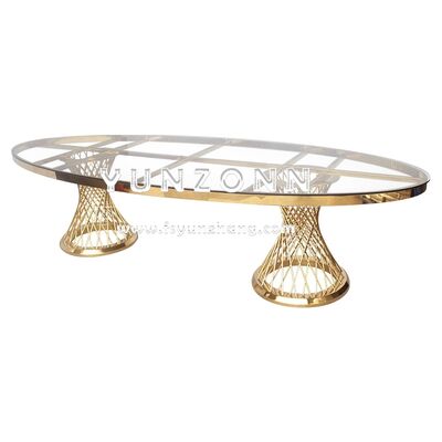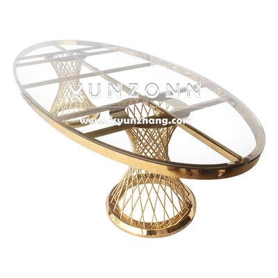 | Ürün Adı: | Modern Paslanmaz Çelik Merkezi Parçalar Restoran Yemek Masası Açık Evlilik Otelleri için Lüks Tarzı Oval Cam Tasarımı |